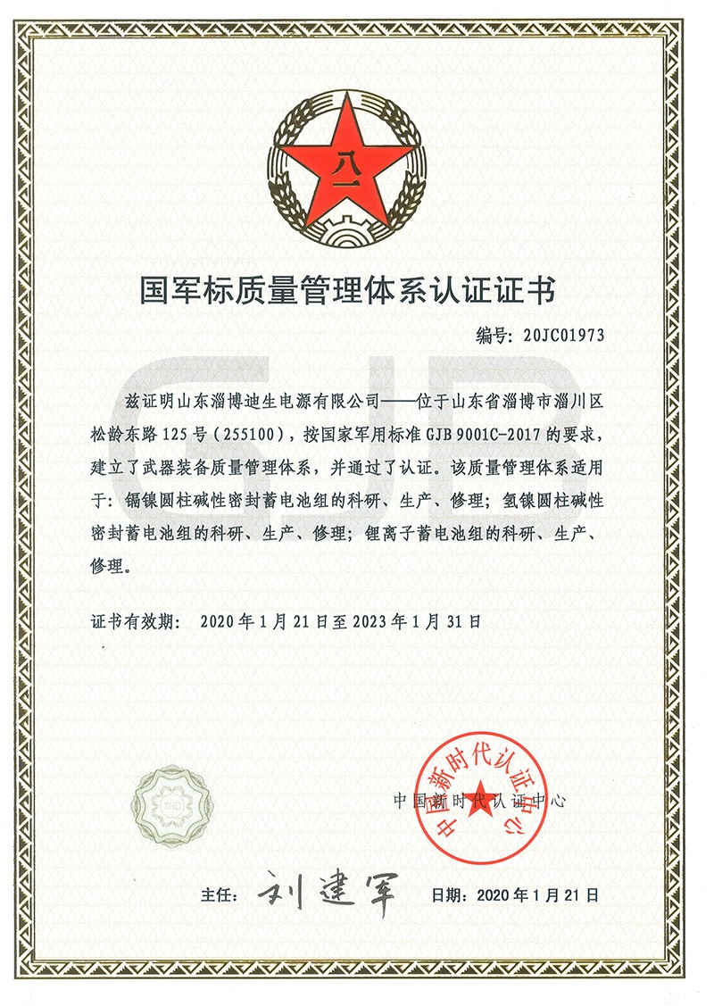 國軍標質量管理體系認證證書